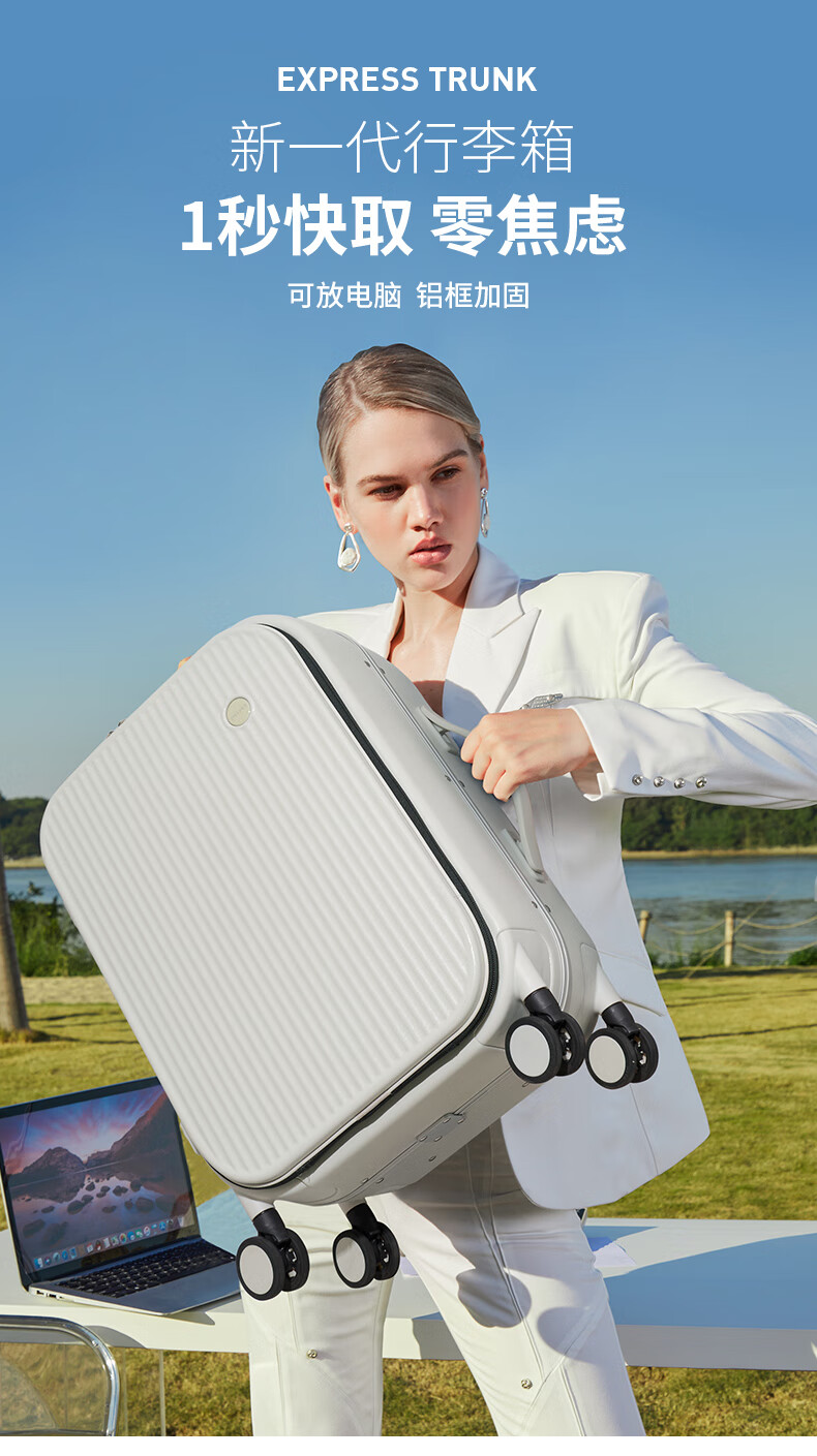 米熙前开盖铝框箱包拉杆箱子密码箱行李箱大容量旅行箱男20英寸烟白70