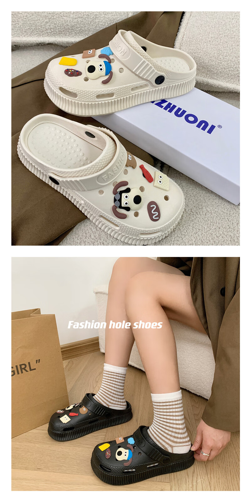 商品名称:她享厚底增高洞洞鞋女外穿防滑松糕高跟包头拖鞋 TD905 咖色 38/39