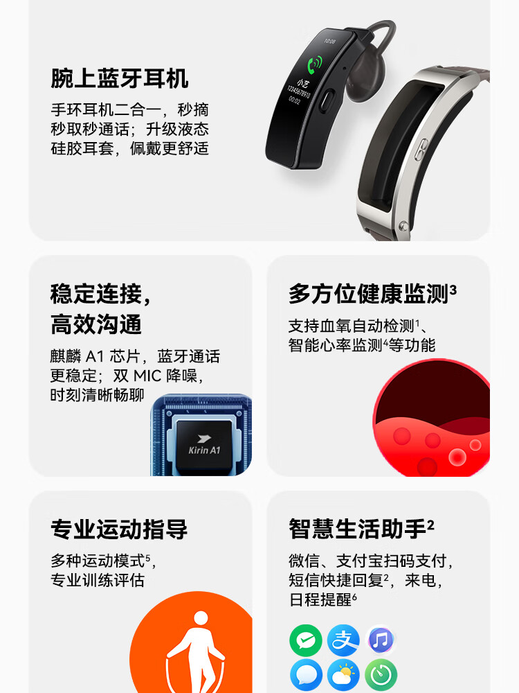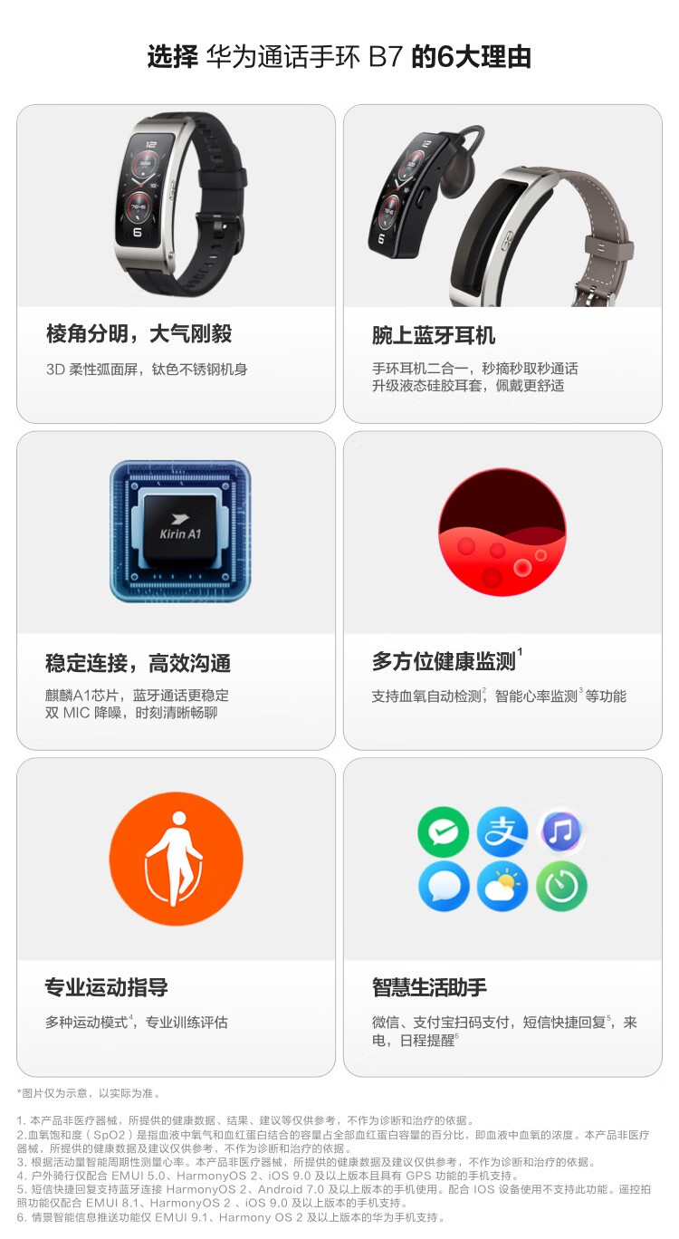 商品名称:华为HUAWEI通话手环 B7 曜金黑 华为运动手环 智能手环 血氧心率健康监测 腕上蓝牙耳机 专业运动指导