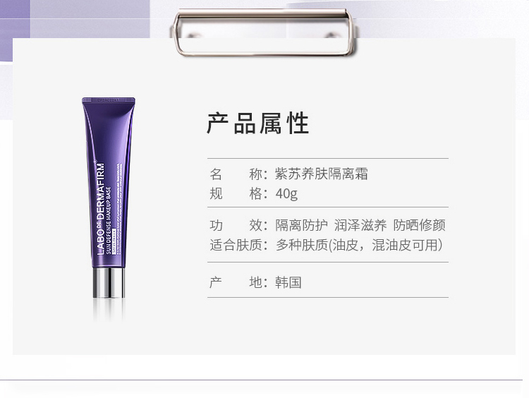 商品名称:德妃(DERMAFIRM)紫苏隔离40g SPF35 PA+++ 防晒霜隔离霜妆前乳素颜霜遮瑕 护肤品